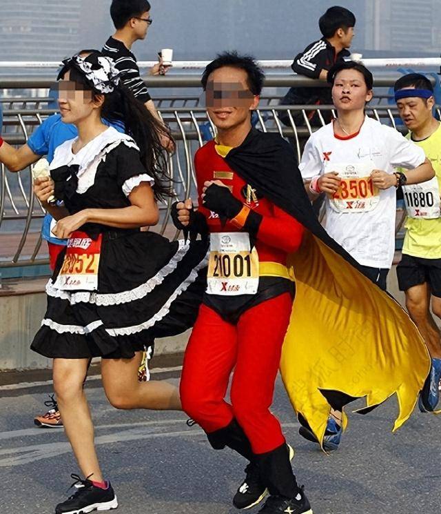 而有些参赛选手,来参赛根本就不是为了跑马拉松,而是另有所图,几乎每场马拉松,你都能看到有极个别的选手,身穿奇装异服。