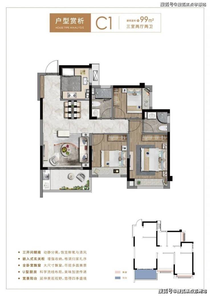 市面上绝大部分80+㎡户型做到三房已是极致,但项目建面约85㎡户型不仅实现3房功能性一步到位,甚至做到了2卫,舒适度和私密性更上一层楼!
